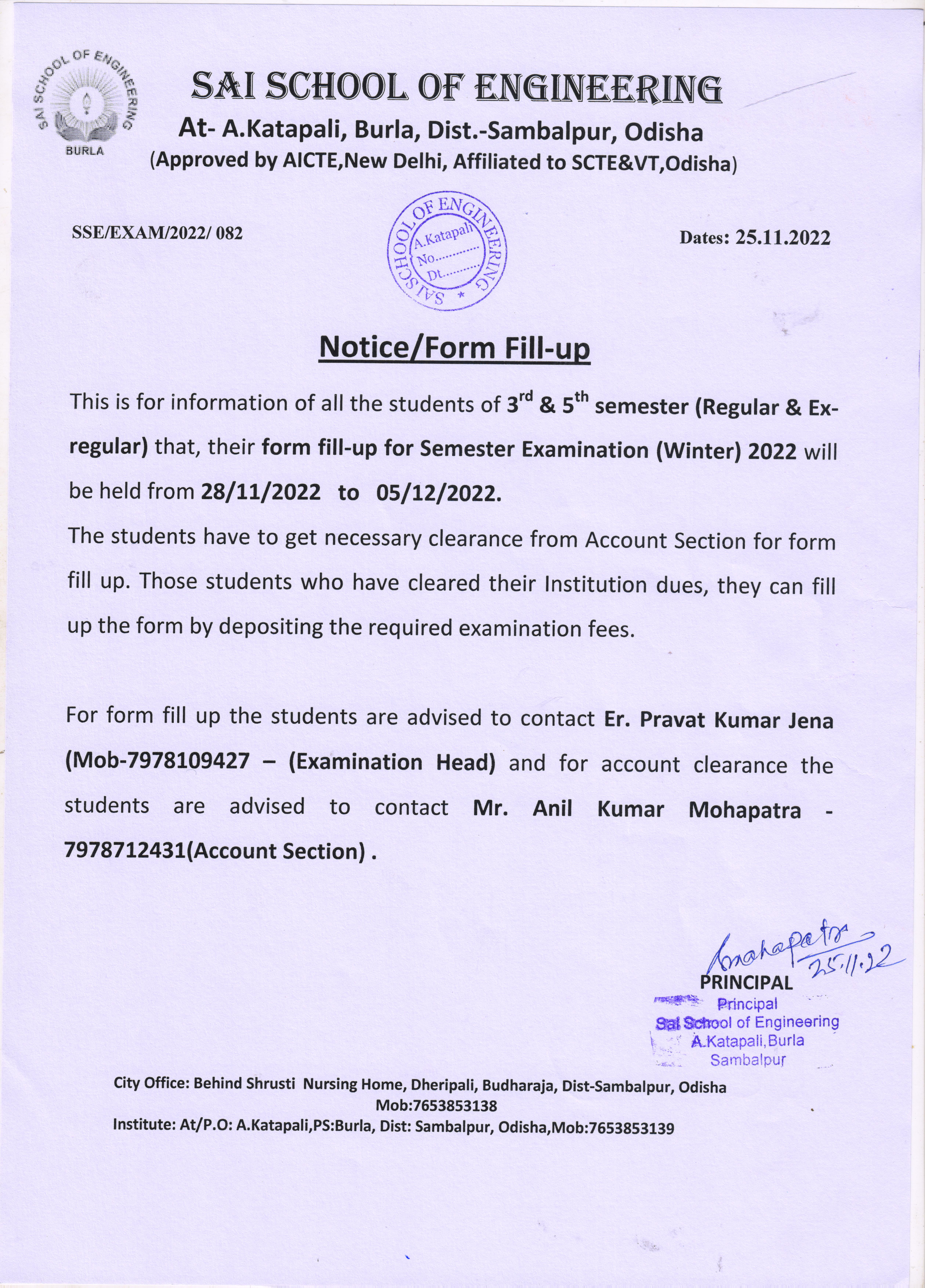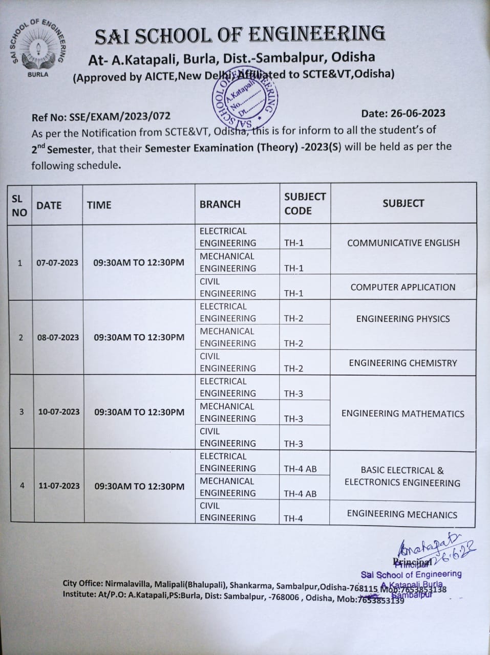SAI SCHOOL OF ENGINEERING IS Approved by AICTE, New Delhi and affiliated to SCTE&VT, Odisha in the year 2019. SAI SCHOOL OF ENGINEERING is a progressive technical Institution in Odisha, set up to promote high standard of Technical education in the state. The institution aims at moulding a new breed of technocrats with the competitive edge to match both national and international standards. The college aims at educating the students to become not only competent professionals but also excellent human beings, who would contribute towards the welfare of the society and help in raising the quality of life of its people.